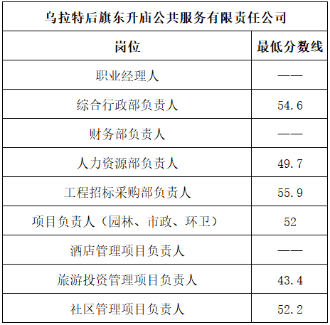 根據(jù)《烏拉特后旗國(guó)有企業(yè)工作人員公開招聘公告》工作安排,現(xiàn)就筆試成績(jī)、資格復(fù)審及領(lǐng)取面試準(zhǔn)考證有關(guān)事項(xiàng)通知如下: