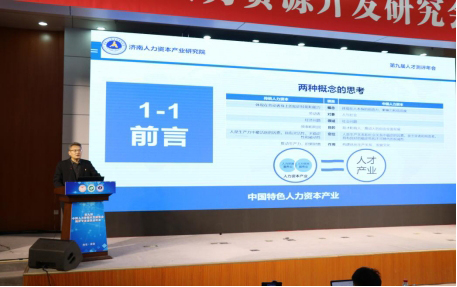 濟(jì)南人力資本產(chǎn)業(yè)研究院副院長(zhǎng)韓俊杰以《中國(guó)特色人力資本產(chǎn)業(yè)》為題,結(jié)合基本概念、形成條件、作用意義和前景展望四個(gè)維度剖析中國(guó)特色人力資本產(chǎn)業(yè)。他認(rèn)為,中國(guó)特色人力資本產(chǎn)業(yè)展現(xiàn)出鮮明的中國(guó)文化特色、堅(jiān)定的以人為本理念、可靠的信用價(jià)值體系、科學(xué)的評(píng)估定價(jià)系統(tǒng),可提供人力資本解決方案、培育新增長(zhǎng)點(diǎn)形成新動(dòng)能、優(yōu)化生產(chǎn)關(guān)系提升生產(chǎn)力、價(jià)值驅(qū)動(dòng)賦能發(fā)展、人才強(qiáng)國(guó)筑夢(mèng)中國(guó),人力資本將成為國(guó)民經(jīng)濟(jì)的新支柱。