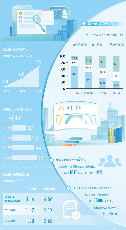 “十四五”促就業(yè)藍(lán)圖繪就,實現(xiàn)更加充分更高質(zhì)量就業(yè),為高質(zhì)量發(fā)展注入源源不斷的人才動力。(記者 李心萍)